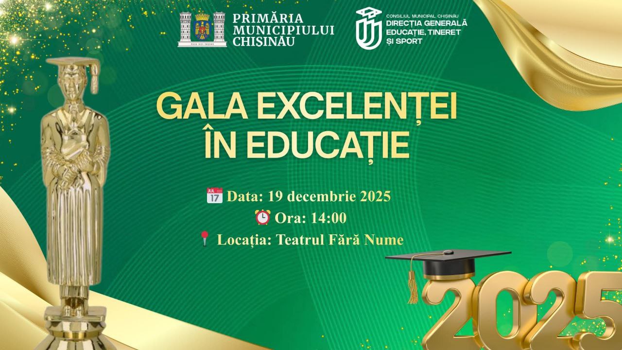 В Кишинёве состоялась Гала-церемония «Превосходство в образовании 2025» — масштабное мероприятие, посвящённое признанию выдающихся достижений учащихся, педагогов и образовательных учреждений муниципия. Организаторами выступили Примэрия муниципия Кишинёв и Главное управление образования, молодёжи и спорта (DGETS).