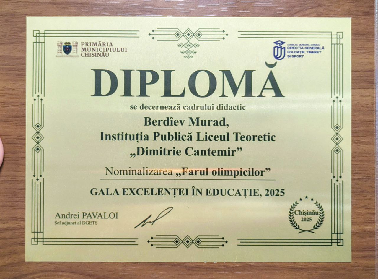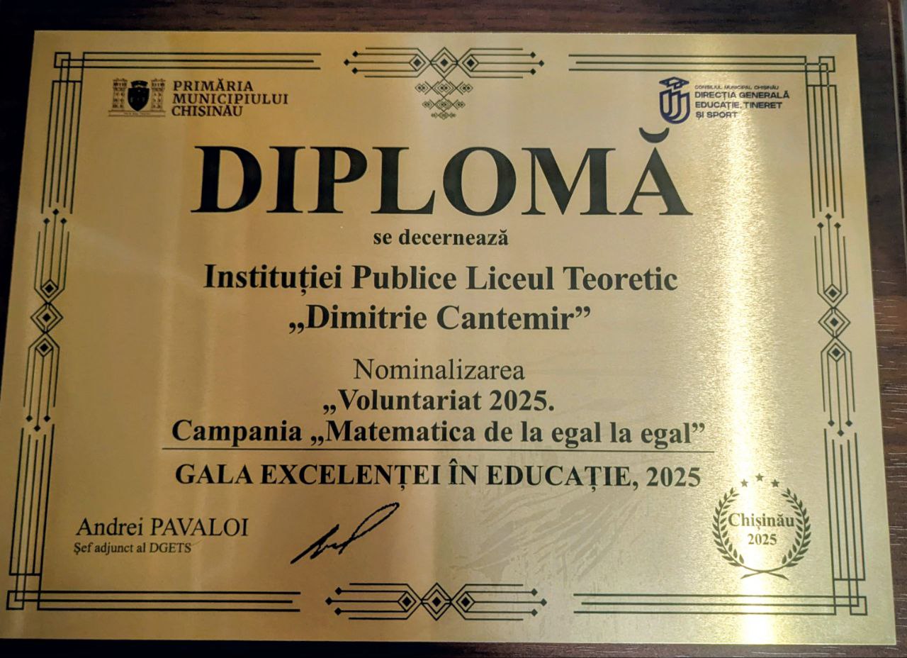Учебное заведение (в лице директора Тамары Ивановны Апроцкой) — награждено в номинациях «Олимпийский лауреат 2025» и «Волонтёр 2025» за активное участие в программе «Matematica de la egal la egal».