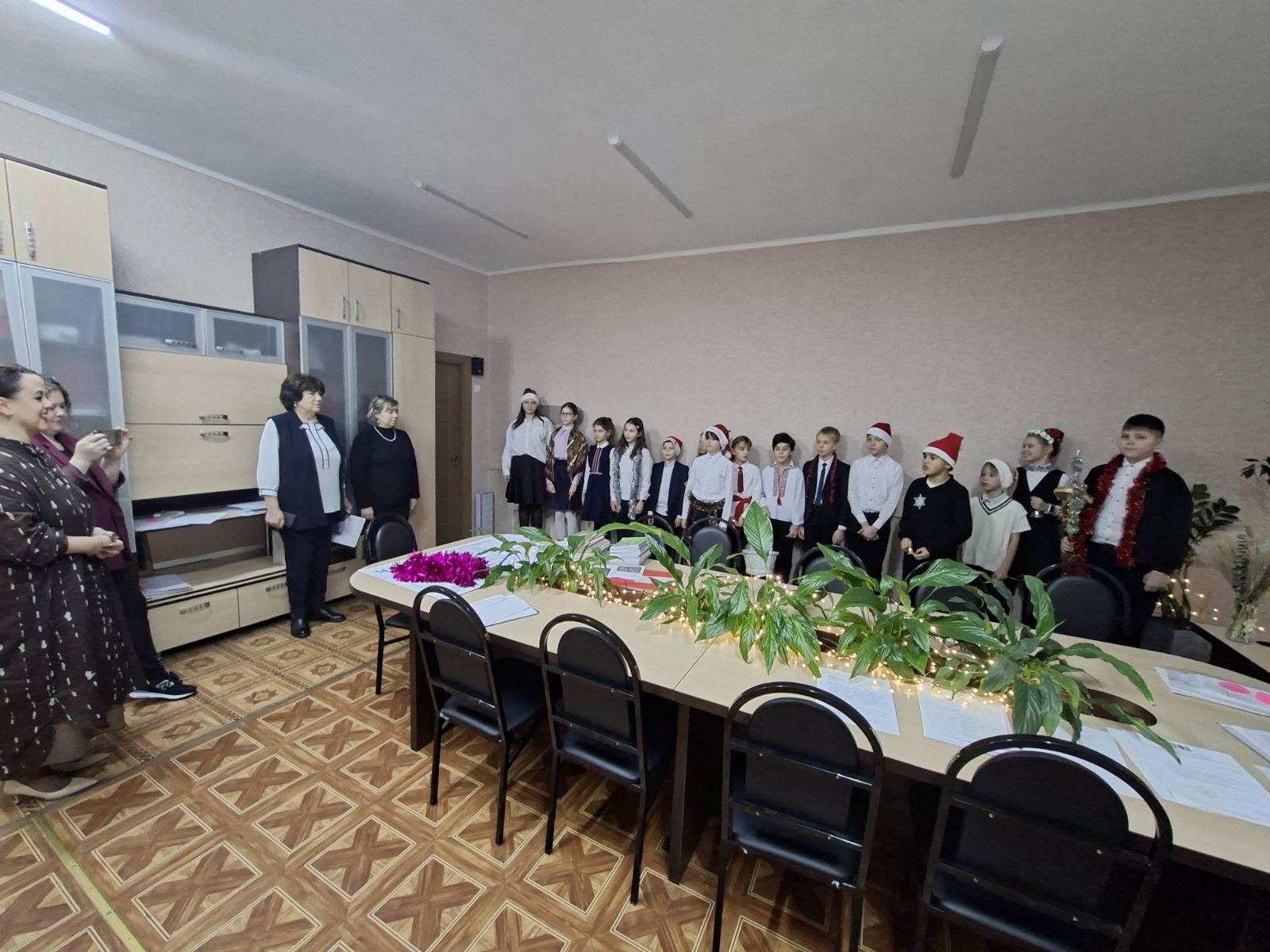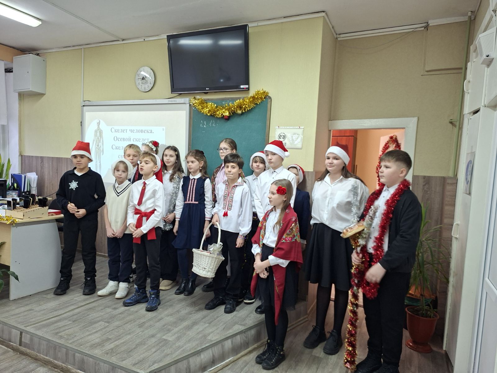 Ученики 5-А класса прошли с колядованием по классам, подготовив особые поздравления для учащихся и педагогов, администрации учебного заведения, библиотекаря и работников столовой.