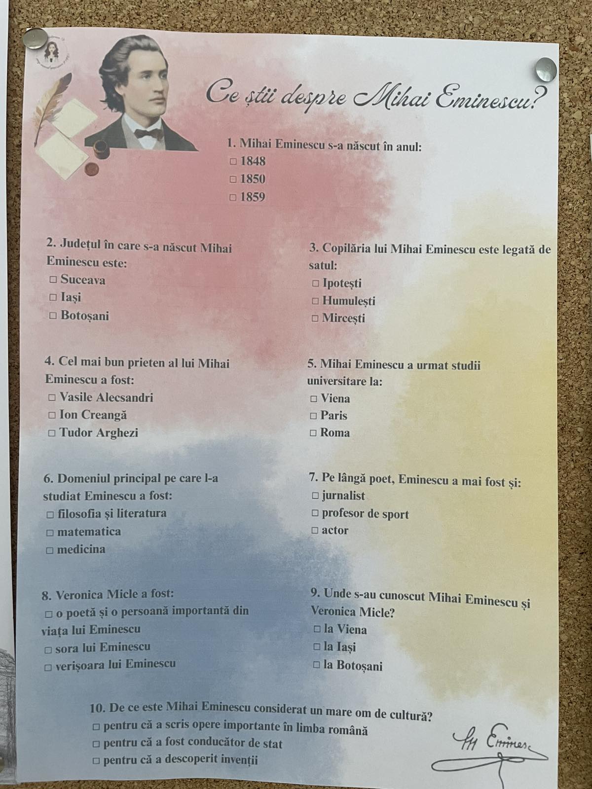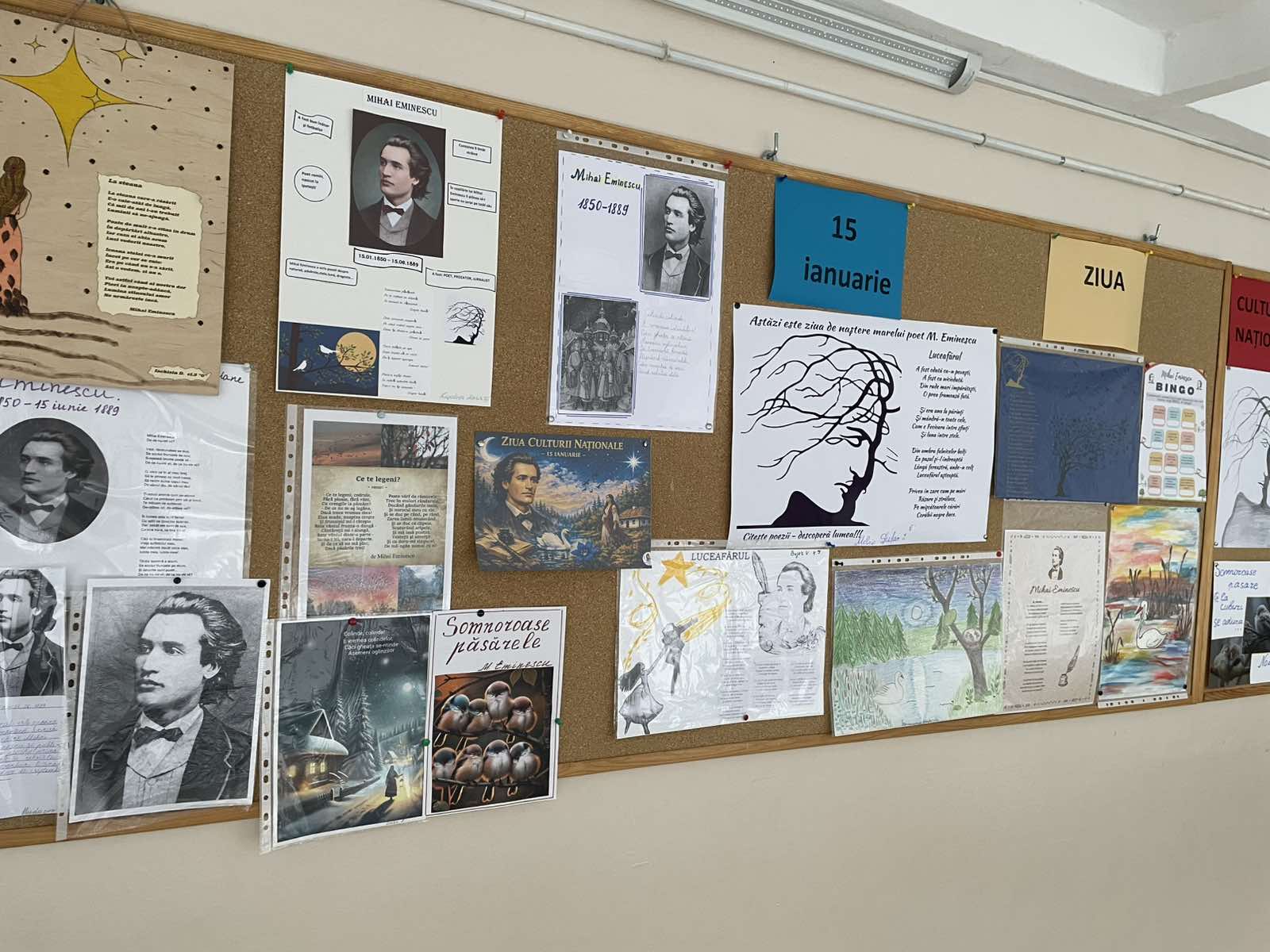 În acest an, pe data de 15 ianuarie, celebrăm 176 de ani de la nașterea poetului Mihai Eminescu. Elevii din clasele primare, ghidați de către profesoarele de limba română, au organizat mai multe activități dedicate „Luceafărului poeziei românești.”