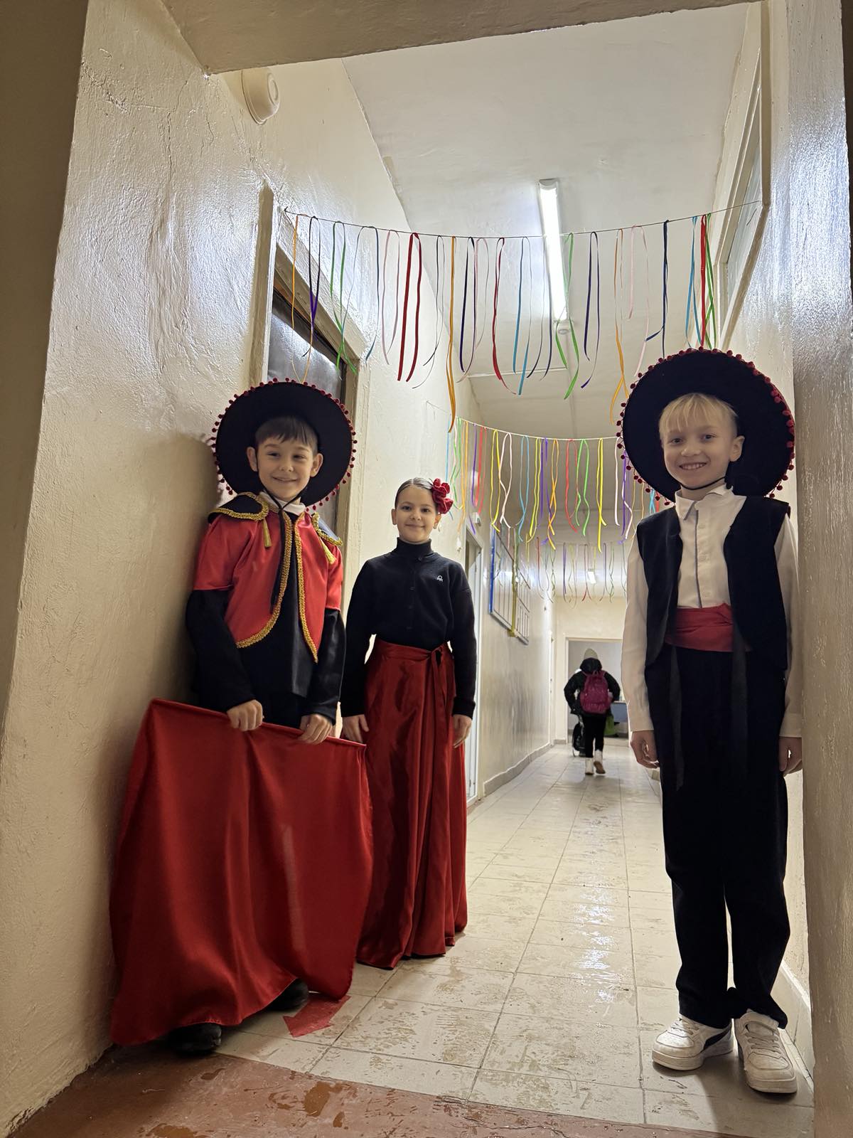 С самого утра школьников встречала зажигательная испанская музыка, создавая атмосферу радости и праздника. Ребята приветствовали друг друга на испанском языке, с улыбкой произнося «¡Hola!», и с интересом погружались в мир испанской культуры. Многие дети пришли в костюмах в испанском стиле, примеряя образы испанцев, матадоров и танцоров фламенко, с удовольствием участвуя в фотосессиях и тематических заданиях.