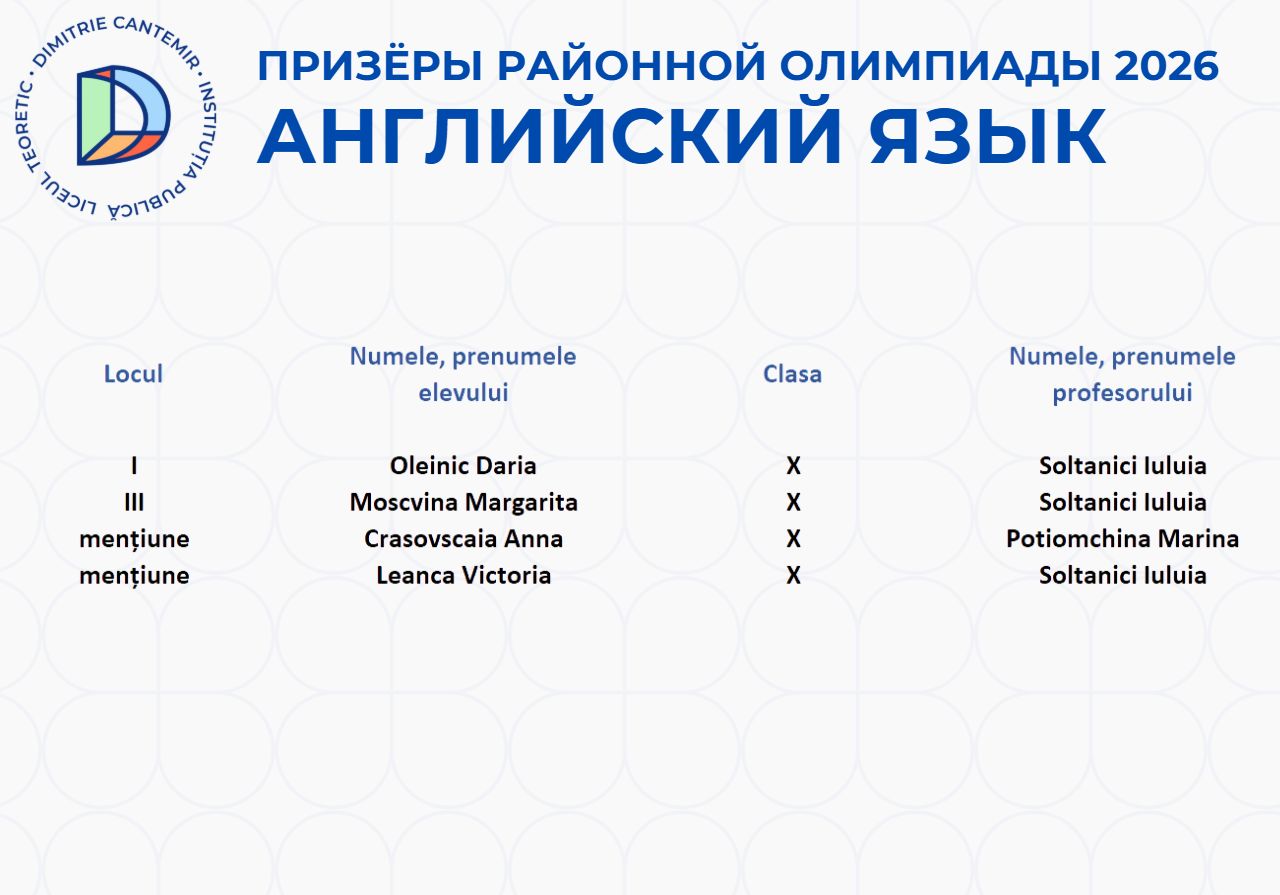 Районная олимпиада по английскому языку 2025-2026 учебного года стала ещё одним подтверждением высокого уровня языковой подготовки учащихся лицея имени Дмитрия Кантемира.