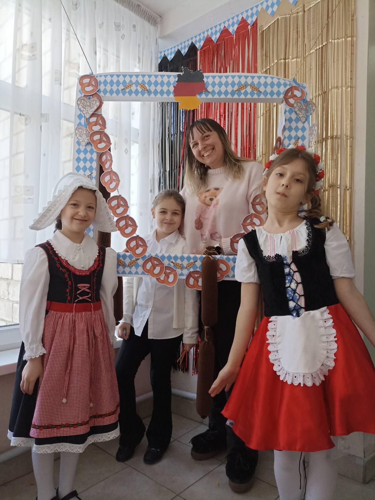 Каждый участник получал в награду яркие наклейки с символами Германии, а для тех, кто предпочитал спокойный отдых, были приготовлены увлекательные кроссворды и забавные раскраски. В фотозонах дети с удовольствием фотографировались с Асей, Матвеем и Машей, облаченными в колоритные национальные костюмы.