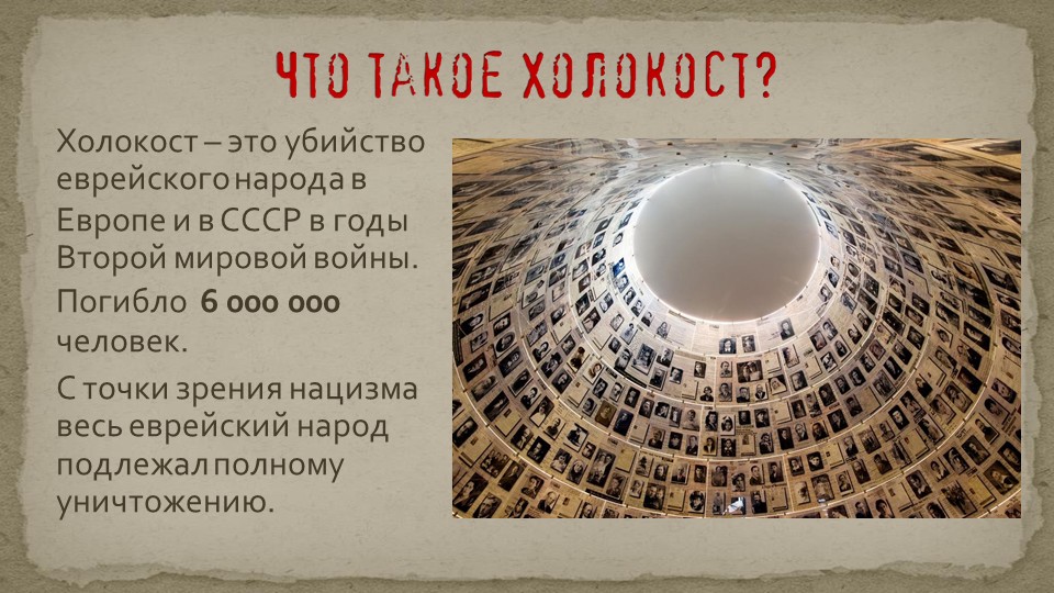 Холокост — это вечный урок о том, как важно оставаться человеком и проявлять доброту к каждому, кто живет на Земле.