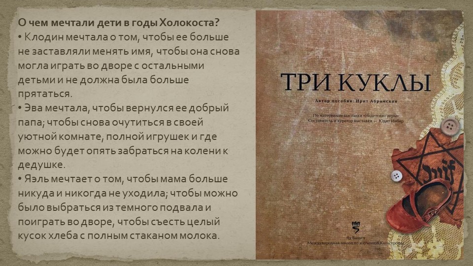 «Весь класс слушал затаив дыхание. История о трех куклах заставила нас задуматься: порой даже такие мелочи могут спасти жизнь и помочь не падать духом в самые темные времена. Мы говорили о ценности человеческой жизни и о том, как важно беречь друг друга. Думаю, этот день помог каждому из нас сделать свои важные выводы».