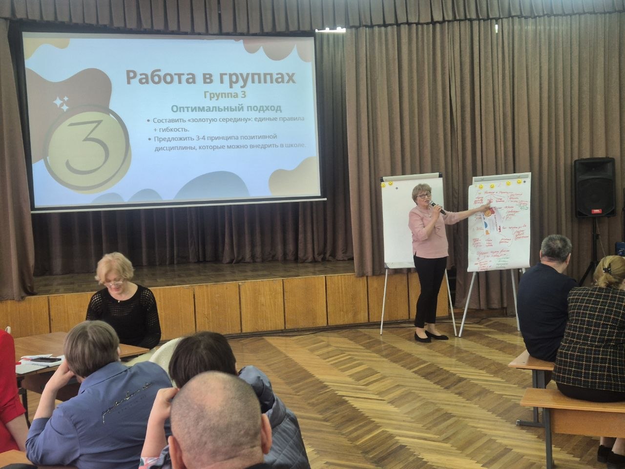 Особое внимание было уделено практическим аспектам: участники работали в группах, анализировали педагогические ситуации и вырабатывали единые принципы взаимодействия с учащимися. В результате обсуждения были сформулированы ключевые идеи: единые правила для всех, гибкость их применения, поддержка личности ребёнка и развитие ответственности.