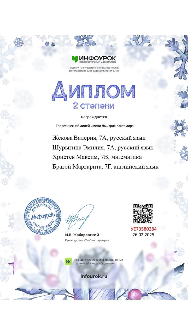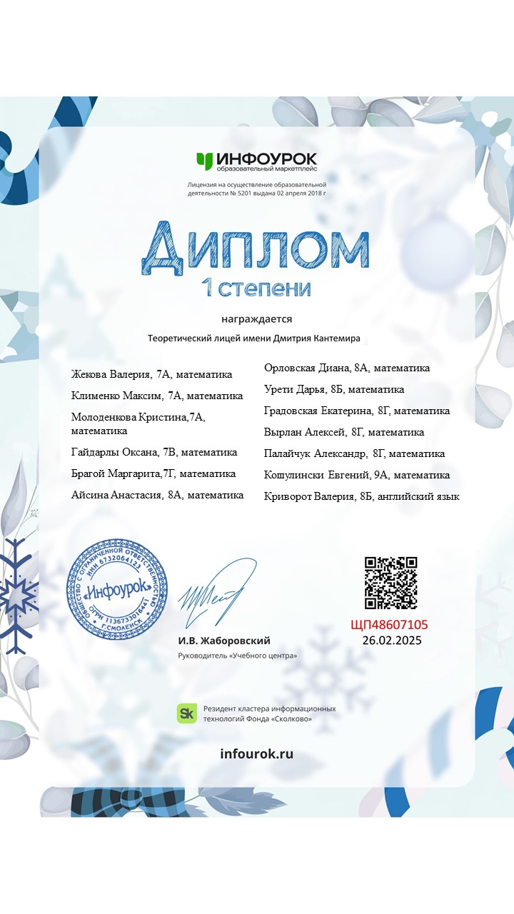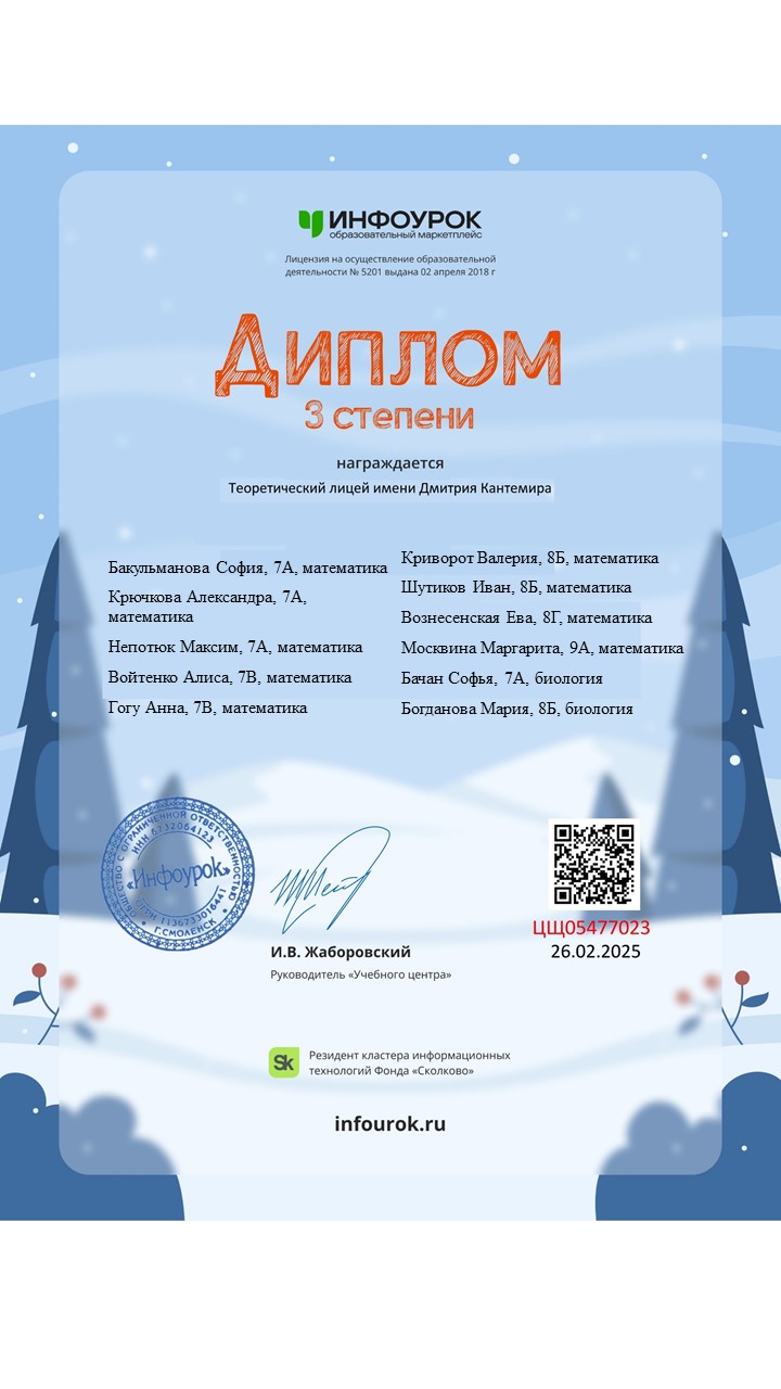 Поздравляем участников и победителей Международной олимпиады «Инфоурок», зимний сезон 2025!