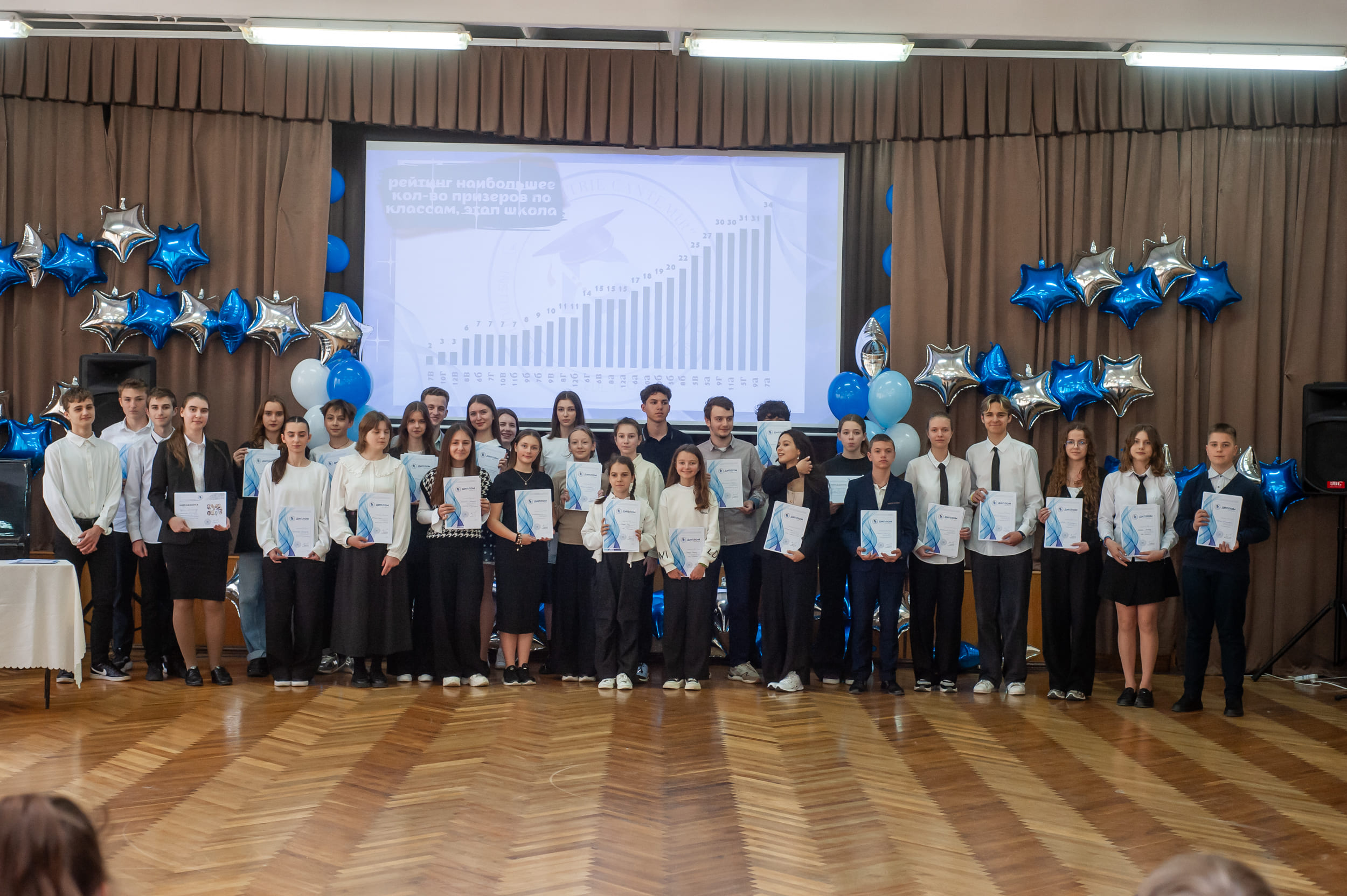 С первых минут в актовом зале царила особенная атмосфера: волнение, улыбки, светлые взгляды и гордость. На сцену поднимались лучшие из лучших — призёры школьных и внешкольных олимпиад, конкурсов, творческих и спортивных соревнований. Каждый призёр был награждён дипломом и ценным подарком как знак признания их трудолюбия, таланта и стремления к знаниям. Эти ребята — не просто ученики, они — пример для подражания, будущие учёные, художники, спортсмены, лидеры. Но самым трогательным моментом стало награждение преподавателей. Ведь за каждым достижением ребёнка — незаметная, но огромная работа, поддержка, вера, участие, тепло.